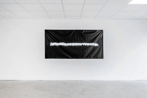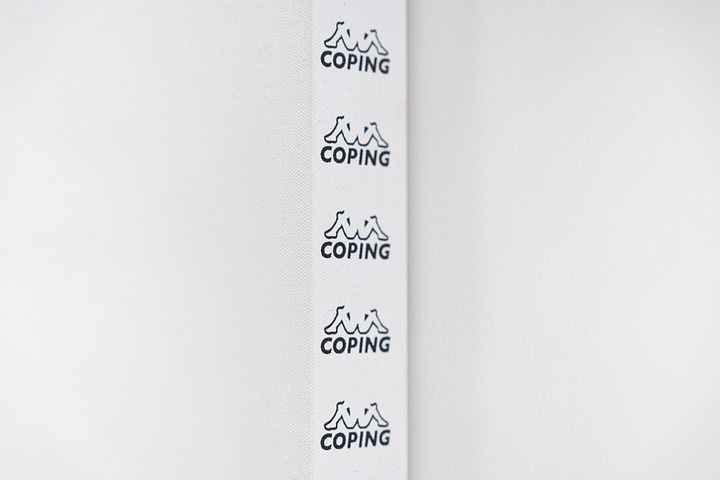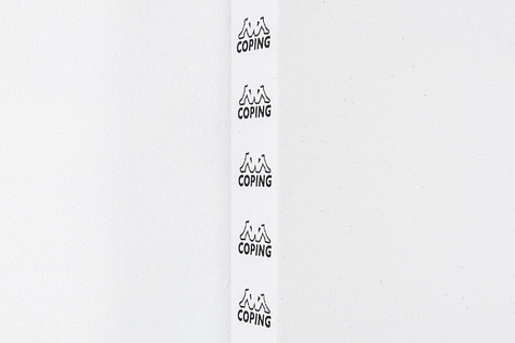 Coping was a stark look into the pervasive influence of corporate imagery on everyday life. His variation of the Omini Kappa logo, bordering a blank canvas, is like a corporate prayer.